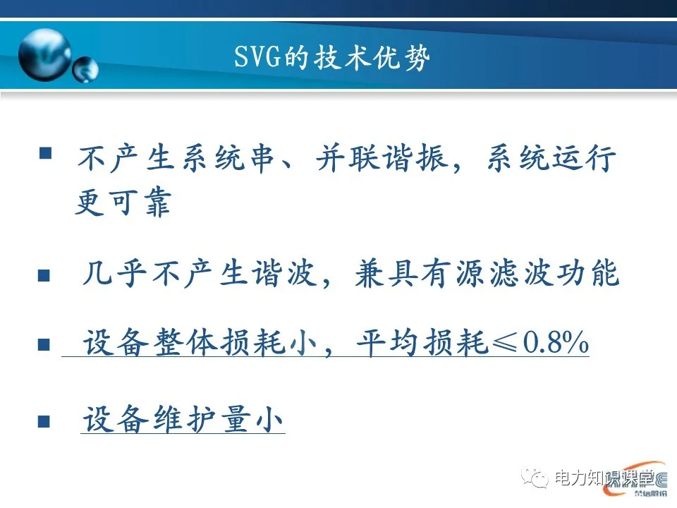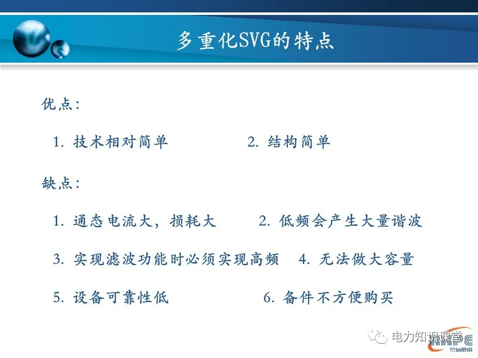 性价比高SVG优点:补偿能力强、速度快、占地小、损耗小 | 性价比低SVC缺点:反应慢、谐波大、占地面积大、损耗大 |