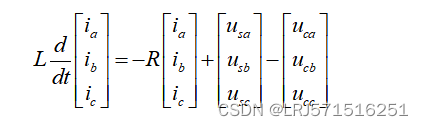 在基频分量下,电压源换流器在三相静止坐标系下的数学模型,以矩阵形式表达。