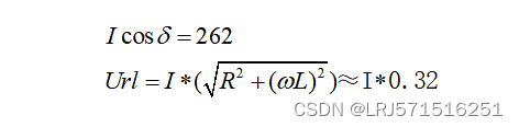 根据无功功率计算出Iq=262,等效电路阻抗R+wL=0.32欧姆,设Us与Uc夹角为 ,