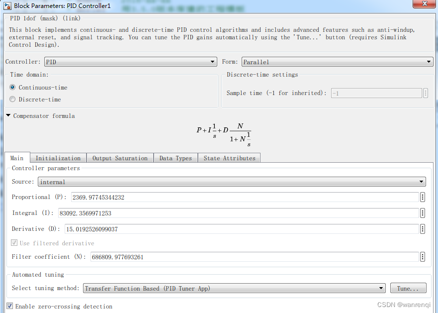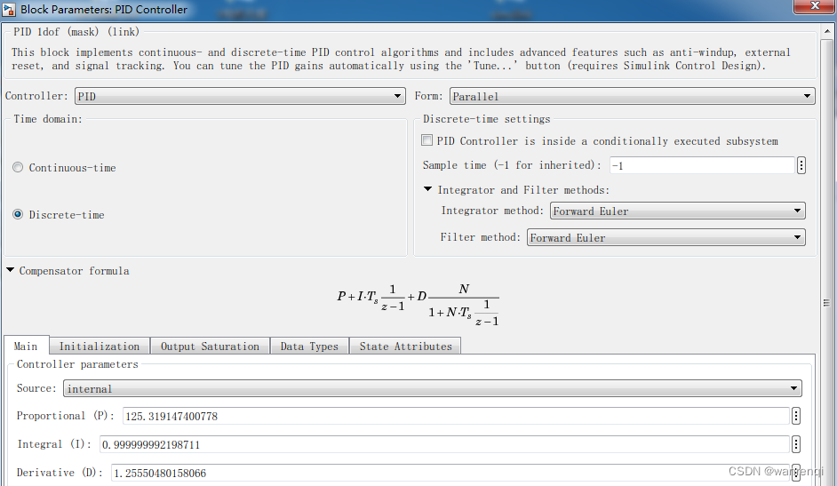 更多详细的参数请参考官方文档:连续时间或离散时间 PID 控制器 - Simulink- MathWorks 中国