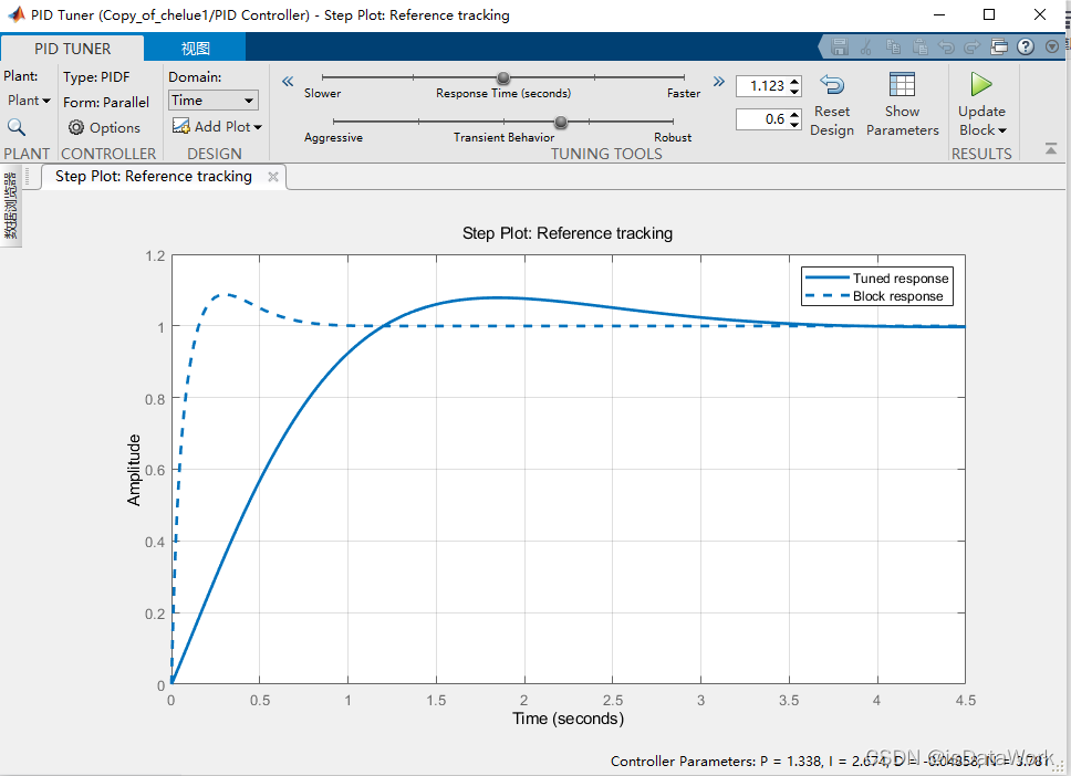 这个是用simulink系统自带的PI控制器调节出来的系统响应。