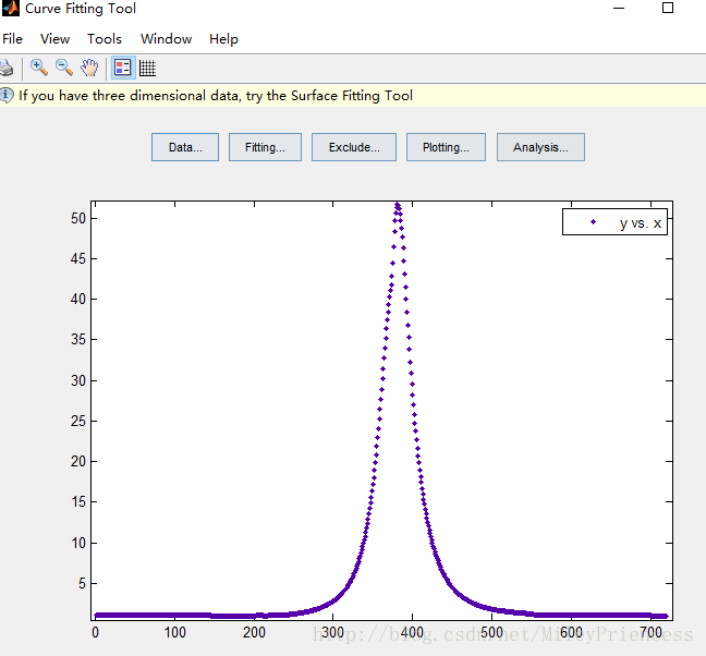 点击 create data set 按钮,即根据所选数据创建一个数据集,再点击close,可以看到拟合工具界面如下,也就是离散图: