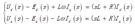 再将两相垂直静止坐标系下的数学模型变换到同步旋转dq坐标系下的数学模型,即: