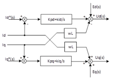 由图3可以得到dq轴间存在耦合,且存在电网电压的扰动,故设计以下控制器对系统进行解耦: