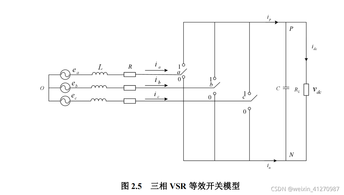 补充:三相VSR中,交流测电感的设计尤为重要,起到升压和滤除谐波作用。桥式功率开关管连接网侧和直流侧,通过对开关管的控制实现能量流动方向控制。并联的二极管在开关管关断时,起到续流的作用。直流侧的储能电容是电压型PWM整流器的标志,直流侧电容不仅可以滤除输出电压纹波,稳定输出电压,还可以滤除因为直流母线电压PWM调制作用,在网侧电流中产生的谐波。该三部分器件的选型将直接决定三相VSR系统稳定性和动态响应速度。