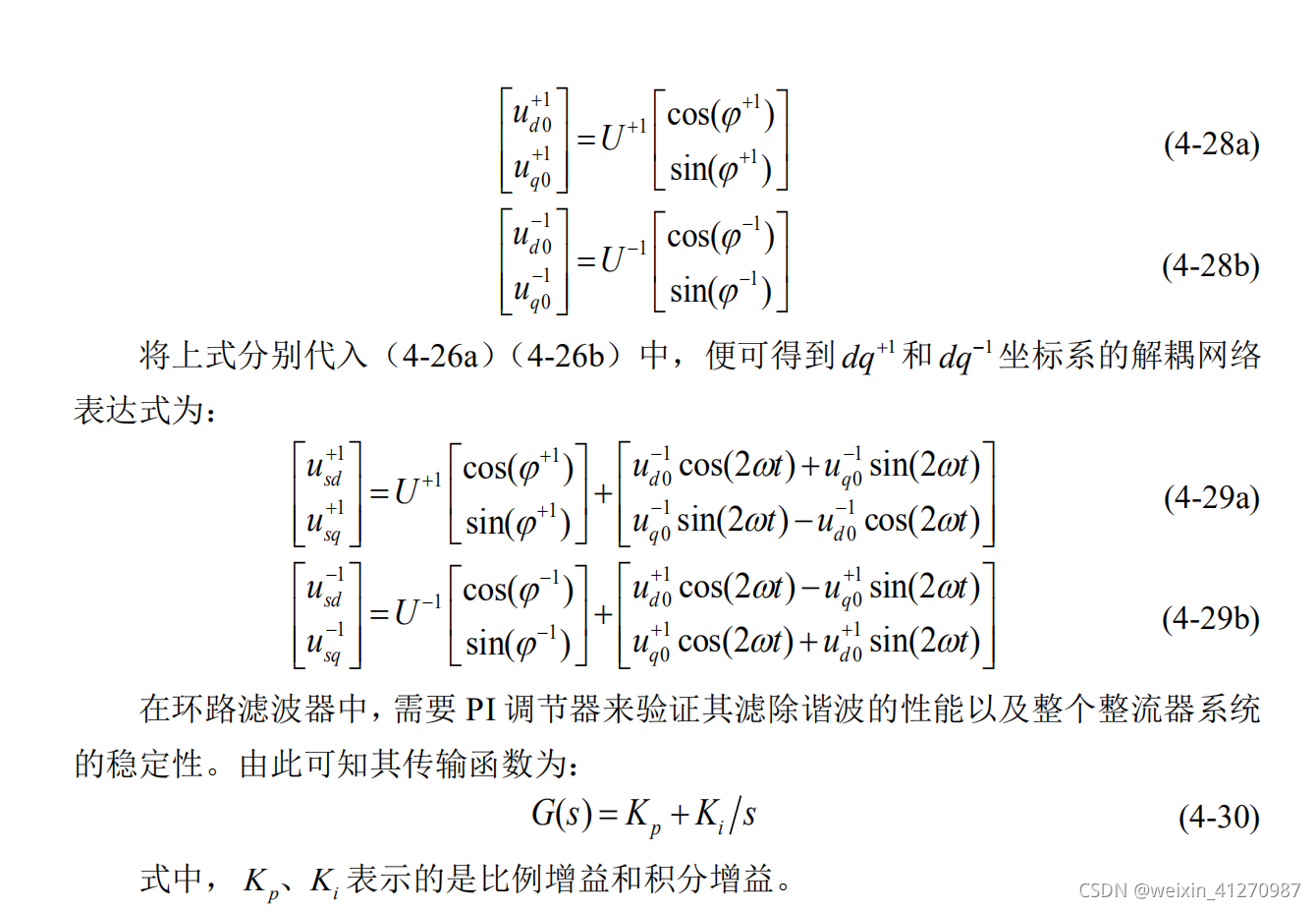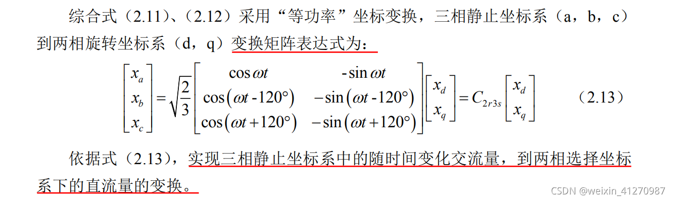 - 在坐标变换的过程中,唯一不变的就是电网角度wt始终没有变,Park变换中的dq轴坐标是按照角速度w旋转,其中w就是输入电压角速度w。