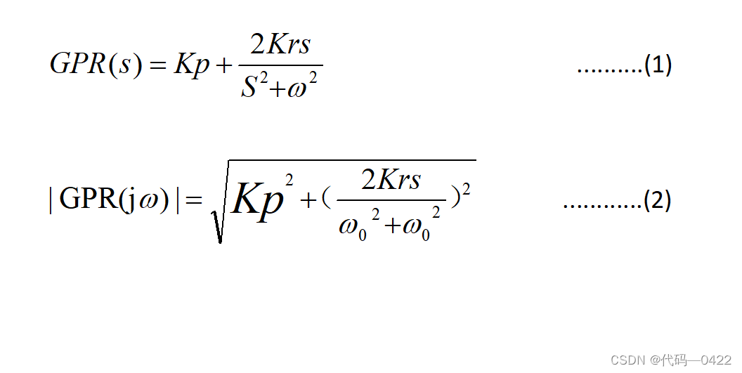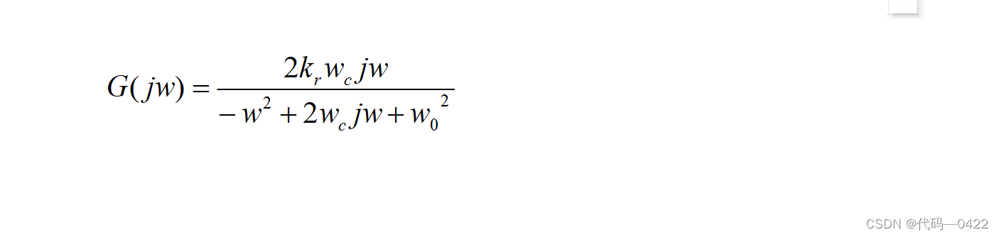 令上式中的ω0/2ωc=Q,则 Q 看作 PR 控制器谐振环节 的品质系数。