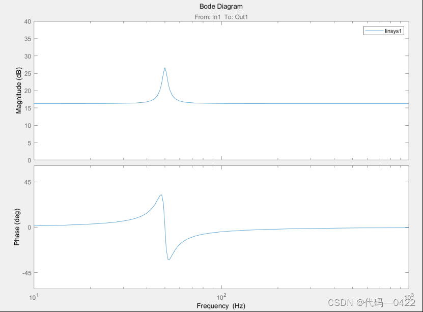 利用matlab绘制一下该传递函数的幅频响应,是在谐振频率ω = ωo的频率点增益无穷大,且没有相位滞后。