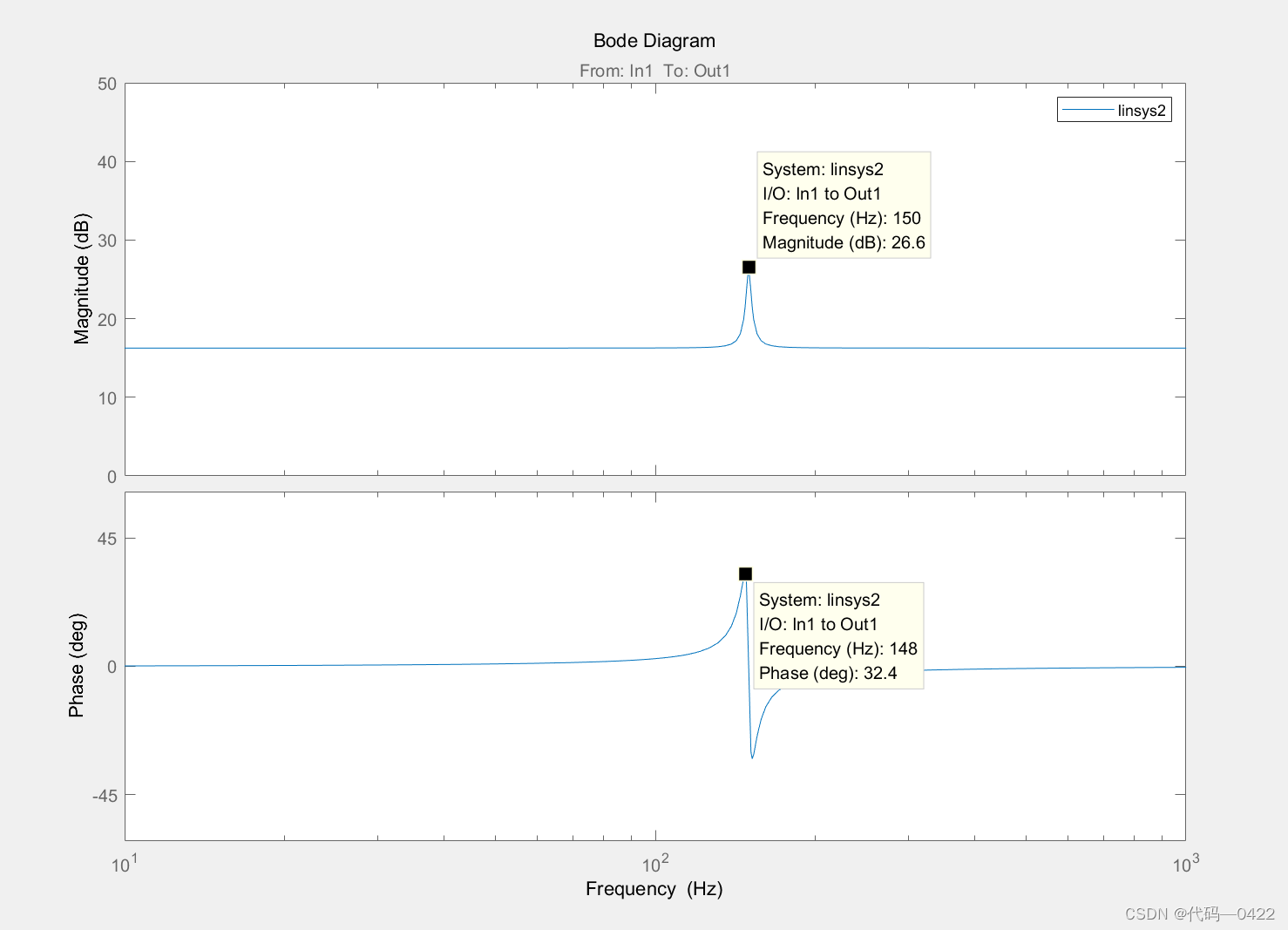 得到的传递函数和Bode图就是比例谐振控制器,对系数进行替换即可得到本文开头的比例谐振控制器传递函数。