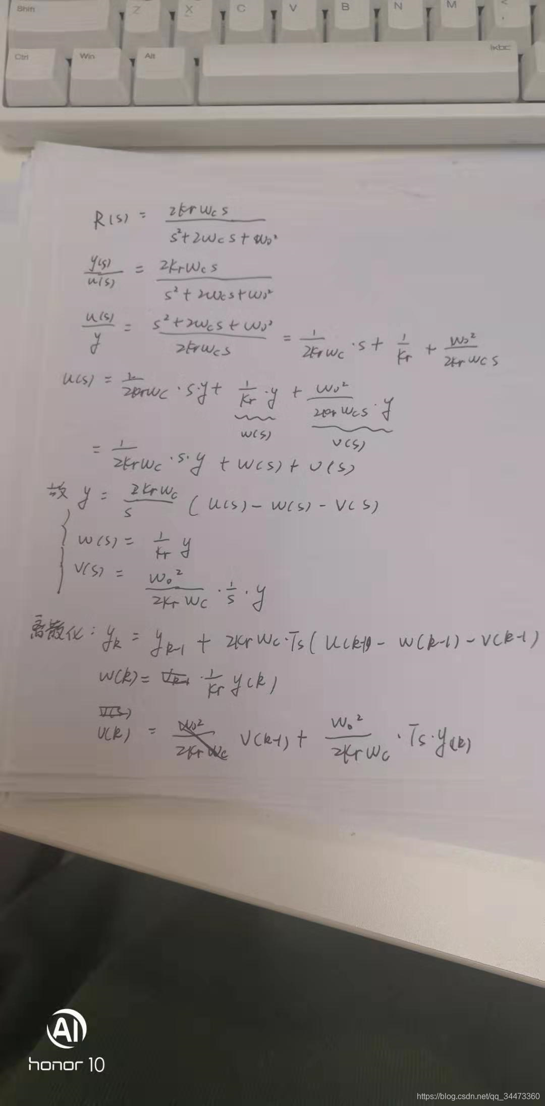 上述是直接根据离散化的方法来进行离散化,还有一种方法是可以将比例谐振控制器拆分成简单的积分组合,引进中间变量,以便于算法实现: