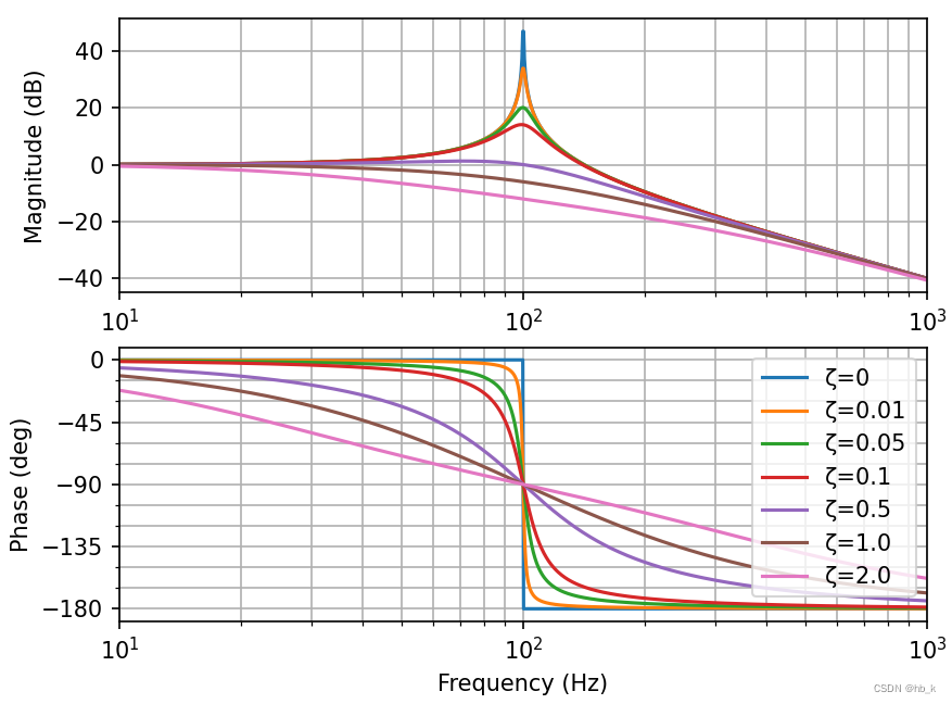 当ζ取不同值时,其Bode图为