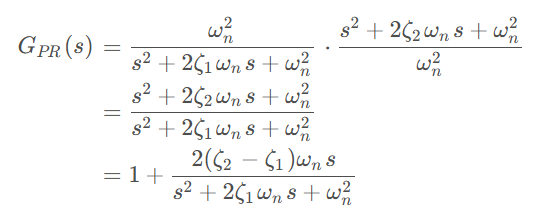 令 ζ1 ( 0.01 ) ) < ζ2 ( 0.5 ),计算两个二阶系统传递函数相除