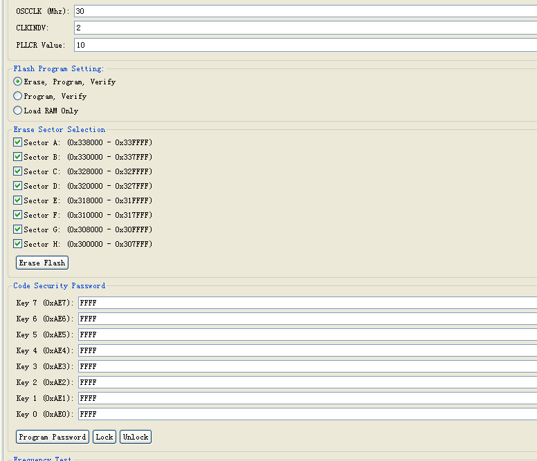 Tools,On chip Flash,将OSCCLK修改成DSP外部实际的晶振。下面保留默认时为DSP的最高频率,最好默认。最后点Remeber My Settings,保存设置。
