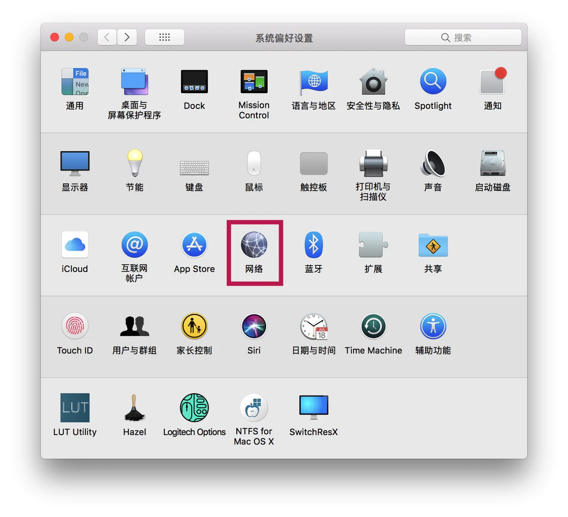 打开「系统偏好设置」,点击「网络」