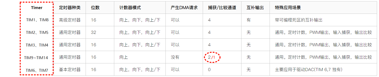 - 通用定时器(TIM2、TIM3、TIM4、TIM5、TIM9~TIM14)
